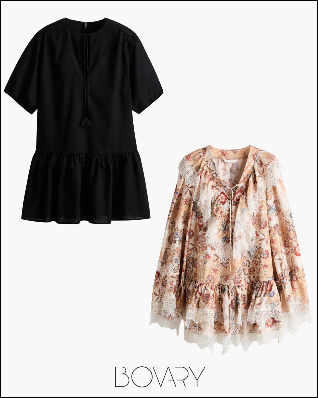 Μαύρο φόρεμα, θα το βρείτε εδώ κι εμπριμέ φόρεμα με δαντέλες, θα το βρείτε εδώ.
