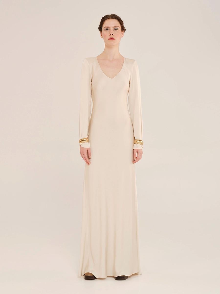 Κρεμ σατέν φόρεμα Ioanna Kourbela/ Δείτε εδώ