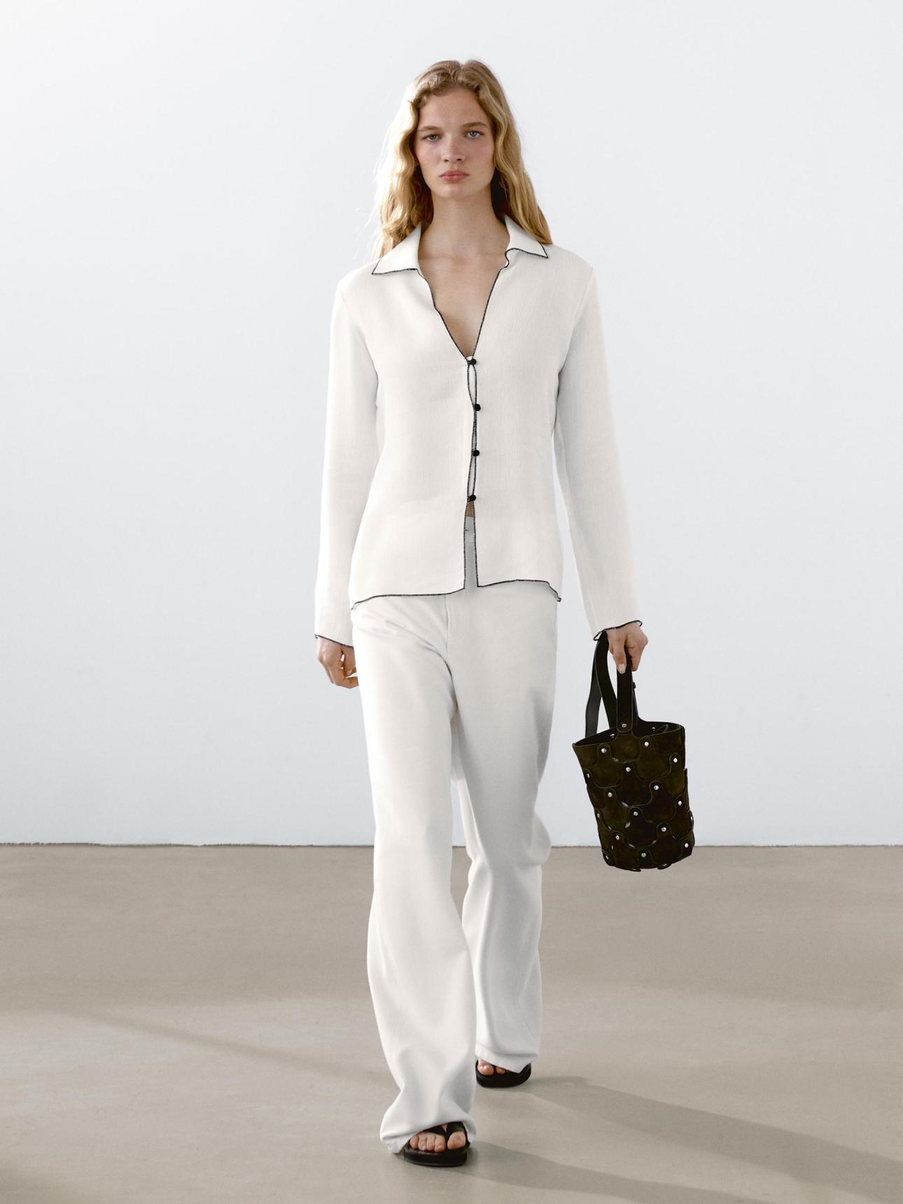 Λευκό πουκάμισο με μαύρες λεπτομέρειες Massimo Dutti/ Δείτε εδώ