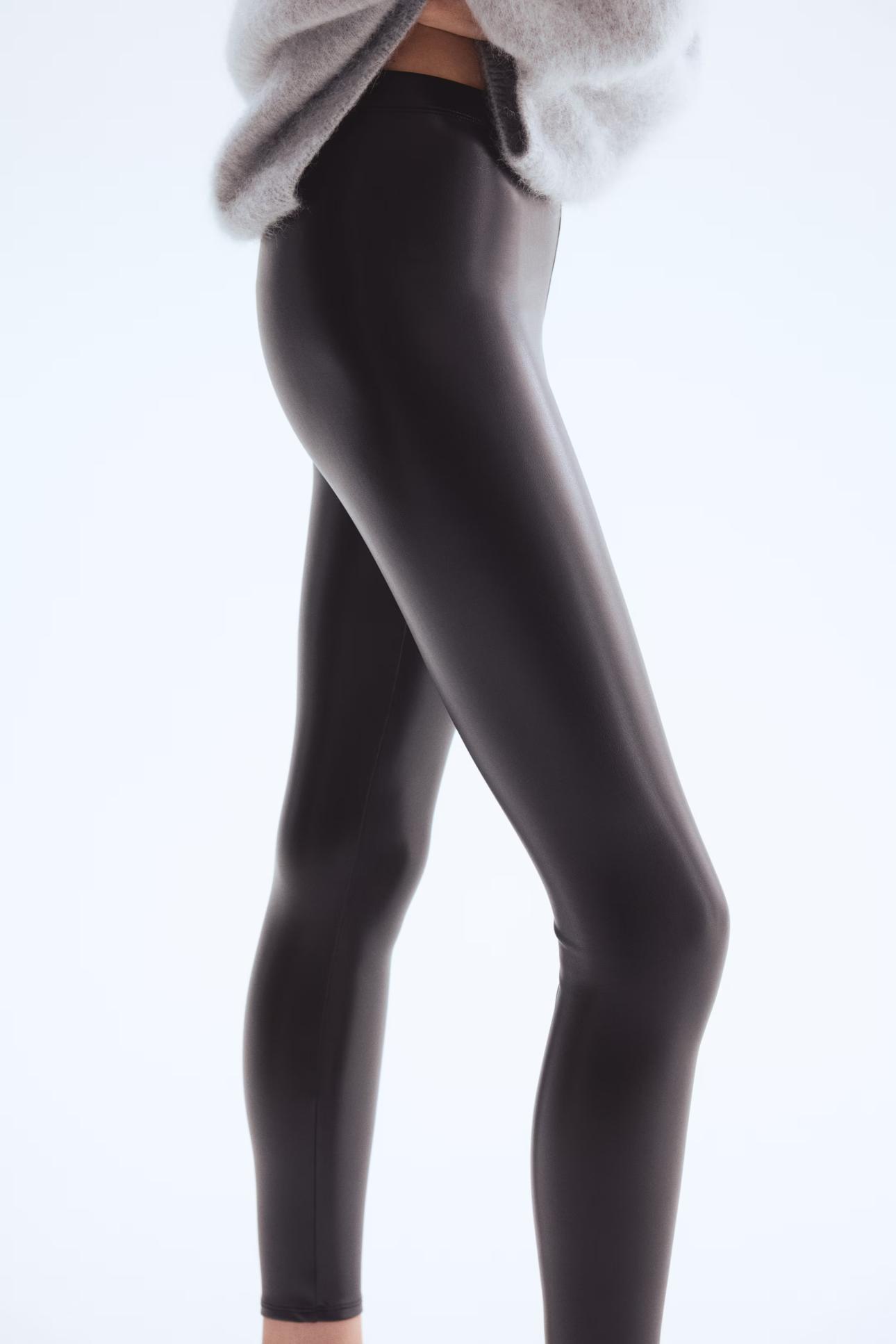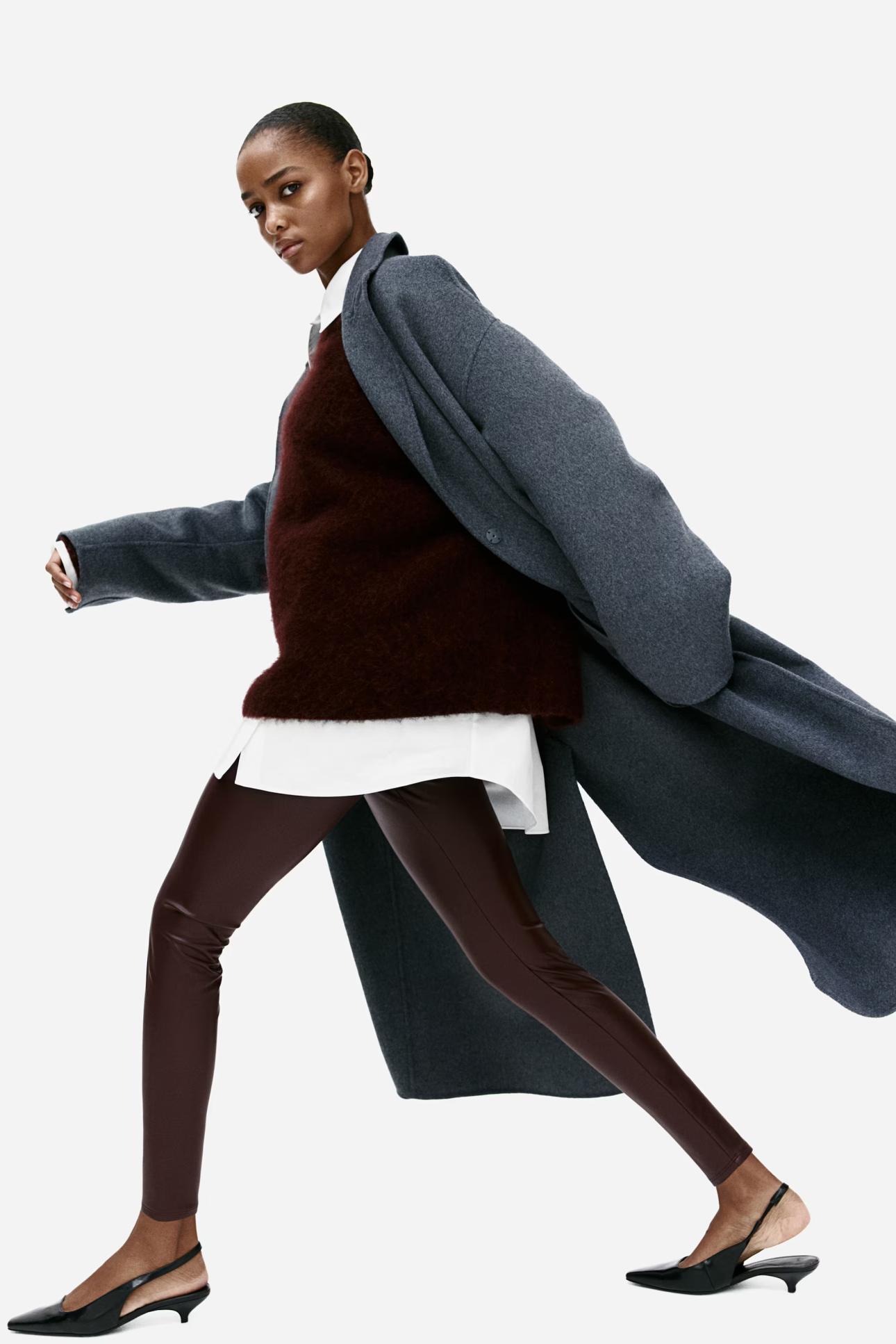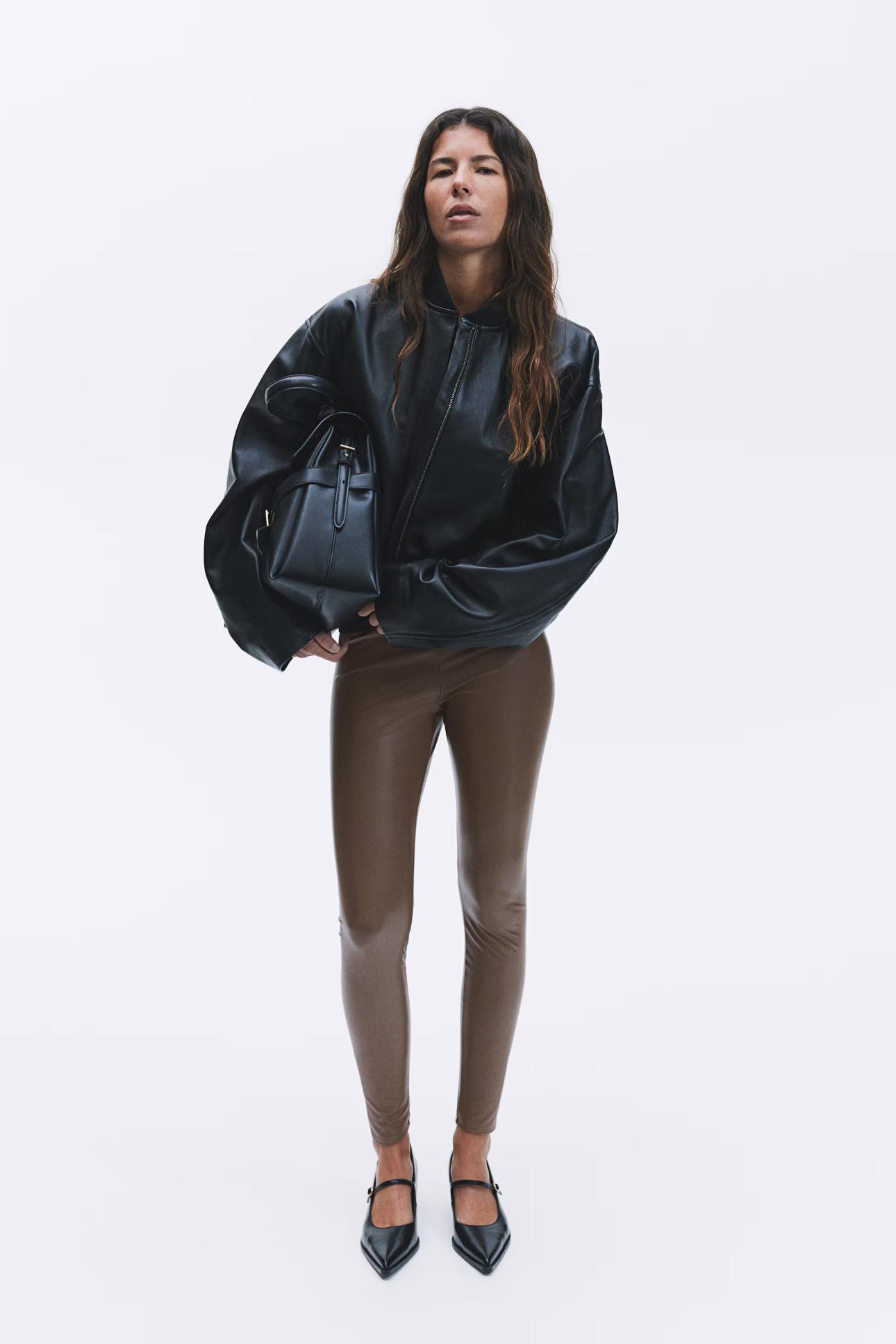 Η πρόταση έρχεται από τα H&M, όπου τα συγκεκριμένα leggings με ελαστική μέση προσφέρουν τέλεια εφαρμογή και άνεση, είτε για μια βόλτα στην πόλη είτε για χαλαρές στιγμές στο σπίτι. Το μυστικό τους βρίσκεται στο όψη δερμάτινου παντελονιού, που αναβαθμίζει αμέσως το σύνολο χωρίς να χάνεται η άνεση. Το μήκος μέχρι τον αστράγαλο και το εφαρμοστό τους κόψιμο τα καθιστούν ιδανικά για να τα φορέσετε με κομψές μπότες, ολοκληρώνοντας μια πολύ στιλάτη εμφάνιση για τον φετινό χειμώνα.