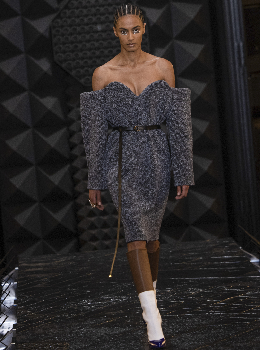 Το sci-fi στοιχείο που λατρεύει ο Ghesquière ήταν εκεί, στα φουτουριστικά αξεσουάρ, τις λευκές μπότες με μεταλλική μύτη και τα γυαλιά ηλίου.