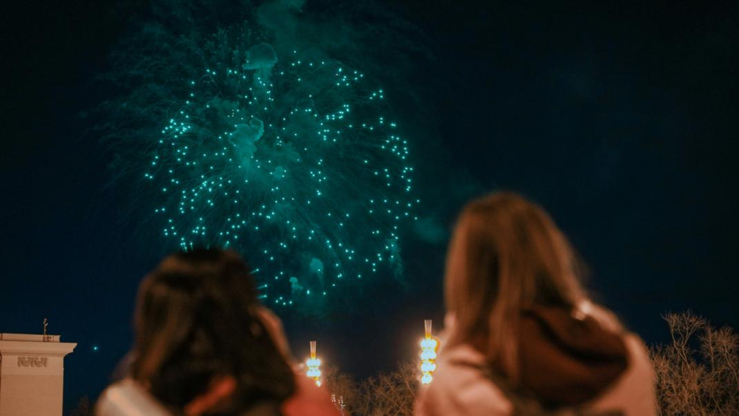 Δύο άτομα κοιτούν τα πυροτεχνήματα