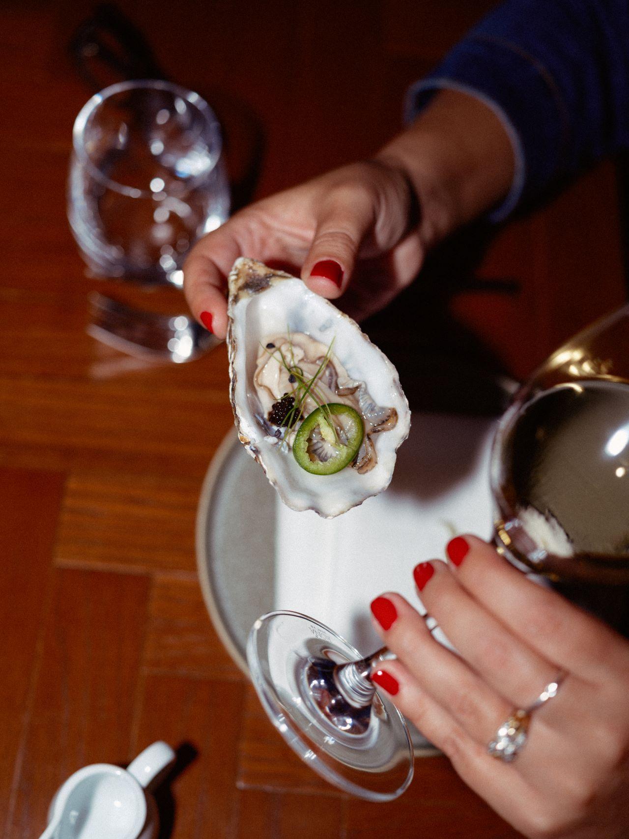 Το δείπνο εκτυλίσσεται σε ένα σκηνικό σύγχρονης τέχνης και bespoke design αντικειμένων, με την πόλη να απλώνεται φωτεινή πίσω από τις μεγάλες τζαμαρίες. Ένα περιβάλλον αστικό και αθηναϊκό.