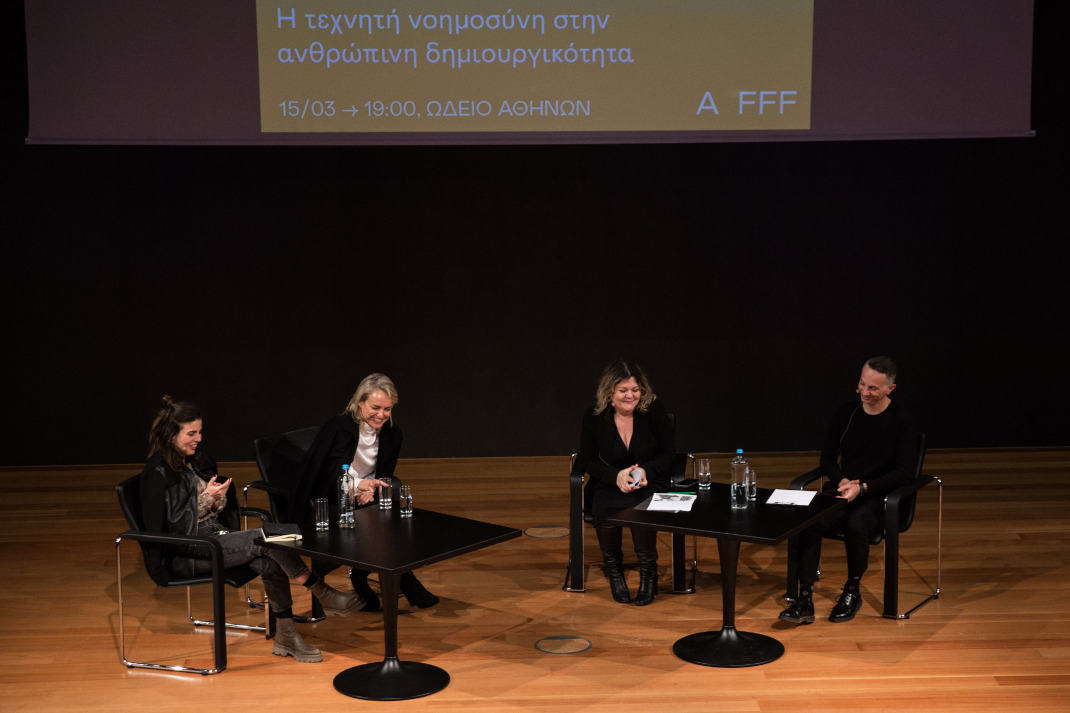 Το ίδιο βράδυ, το roundtable που εξέταζε την κεντρική θεματική του 4ου AFFF «Art-istic OR Art-ificial?": Η τεχνητή νοημοσύνη στην ανθρώπινη δημιουργικότητα» με moderator την δημοσιογράφο Κατερίνα Ι. Ανέστη, παρουσίασε τα αποτελέσματα του workshop που είχε πραγματοποιηθεί λίγες ώρες πριν. Σε αυτό, φοιτητές με την πολύτιμη συνεργασία της Ευριδίκης Παπαχρήστου από το Διεθνές Πανεπιστήμιο Ελλάδος Τμήμα δημιουργικού σχεδίου Μόδας και της Σχολής Ηλεκτρολόγων Μηχανικών και Μηχανικών Υπολογιστών του Εθνικού Μετσοβίου Πολυτεχνείου, δημιούργησαν σχέδια με μέσα τεχνητής νοημοσύνης και παραδοσιακά εργαλεία, βλέποντας τα θετικά και τα αρνητικά και στις δύο διαδικασίες. Τα αποτελέσματα παρουσιάστηκαν στο roundtable από τους διοργανωτές του workshop Ορσαλία Παρθένη, Artistic Director, PARTHENIS και Γιώργο Στάμου, Καθηγητή της Σχολής Ηλεκτρολόγων Μηχανικών και Μηχανικών Υπολογιστών του Εθνικού Μετσοβίου Πολυτεχνείου, (ΣΗΜΜΥ ΕΜΠ), οι οποίοι επέκτειναν την συζήτηση και στις ηθικές και φιλοσοφικές διαστάσεις που ανοίγει το θέμα, μαζί και με την εικαστικό Κυριακή Γονή.