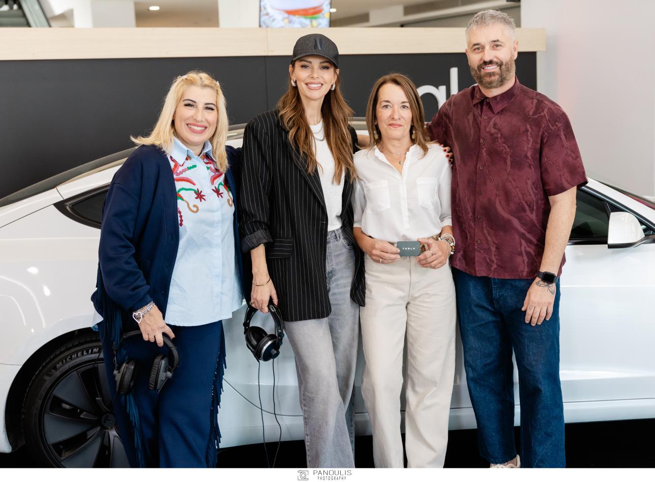 Η είσοδος του εμπορικού από τη Λεωφόρο Βουλιαγμένης είχε μεταμορφωθεί σε ένα εντυπωσιακό σκηνικό που έμοιαζε να έχει ξεπηδήσει από το μέλλον. Ένα minimal, φωτεινό Pop up/περίπτερο τραβούσε τα βλέμματα των περαστικών, με το ολοκαίνουργιο Tesla Model 3 να δεσπόζει στο κέντρο του χώρου — σύμβολο τεχνολογίας, καινοτομίας και αλλαγής. Πλάι του, το ραδιοφωνικό booth του Ρυθμού 94.9 εξέπεμπε ζωντανά, δημιουργώντας μια μοναδική ατμόσφαιρα: Mουσική, χαμόγελα, αλληλεπίδραση και... πολύ ενέργεια στον αέρα!