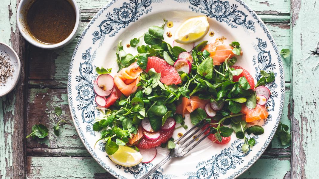 Πράσινη σαλάτα με σολομό και γκρέιπφρουτ
