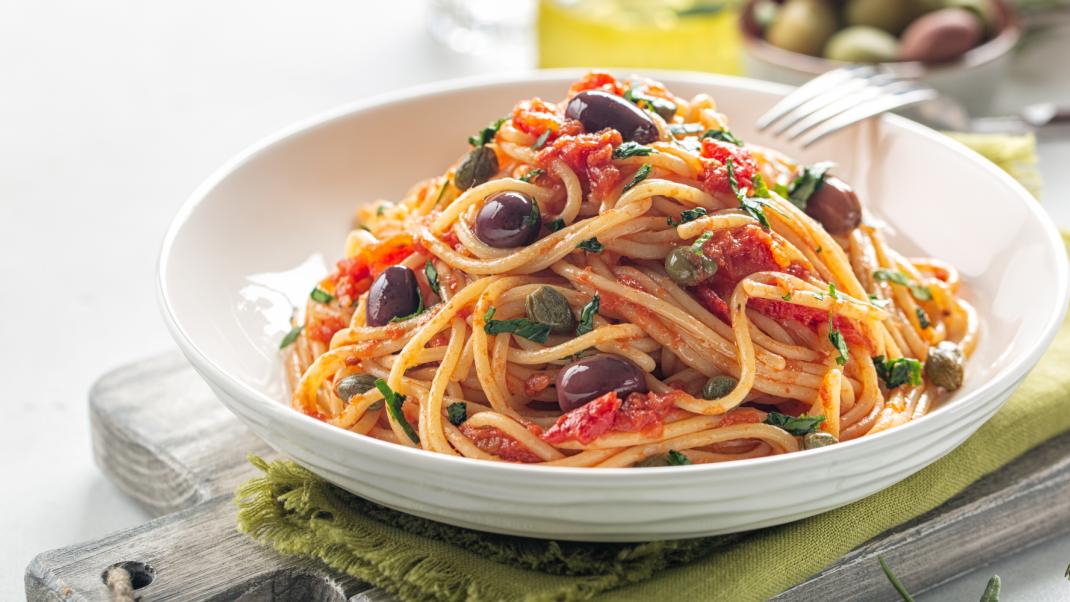 Εύκολη συνταγή: Σπαγγέτι με ντομάτα, ελιές και κάπαρη -Αρωματική και πικάντικη