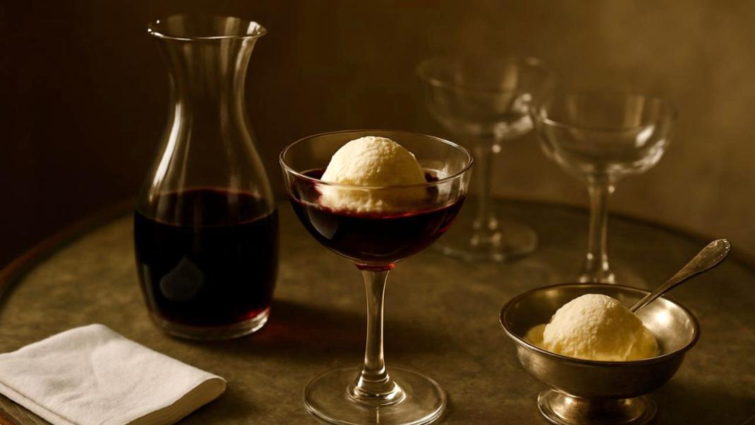 Η διαδικασία είναι απλή: Βάλτε μία ή δύο μπάλες παγωτό σε ένα ποτήρι και ρίξτε αργά το κόκκινο κρασί από πάνω.