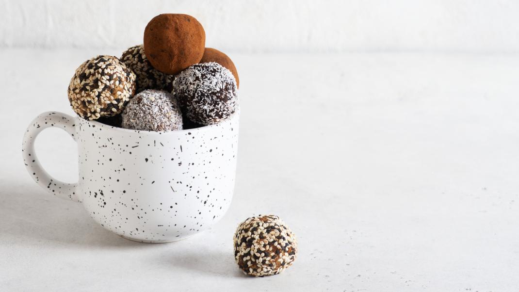 Tρουφάκια με αμύγδαλα, σταφίδες και ταχίνι