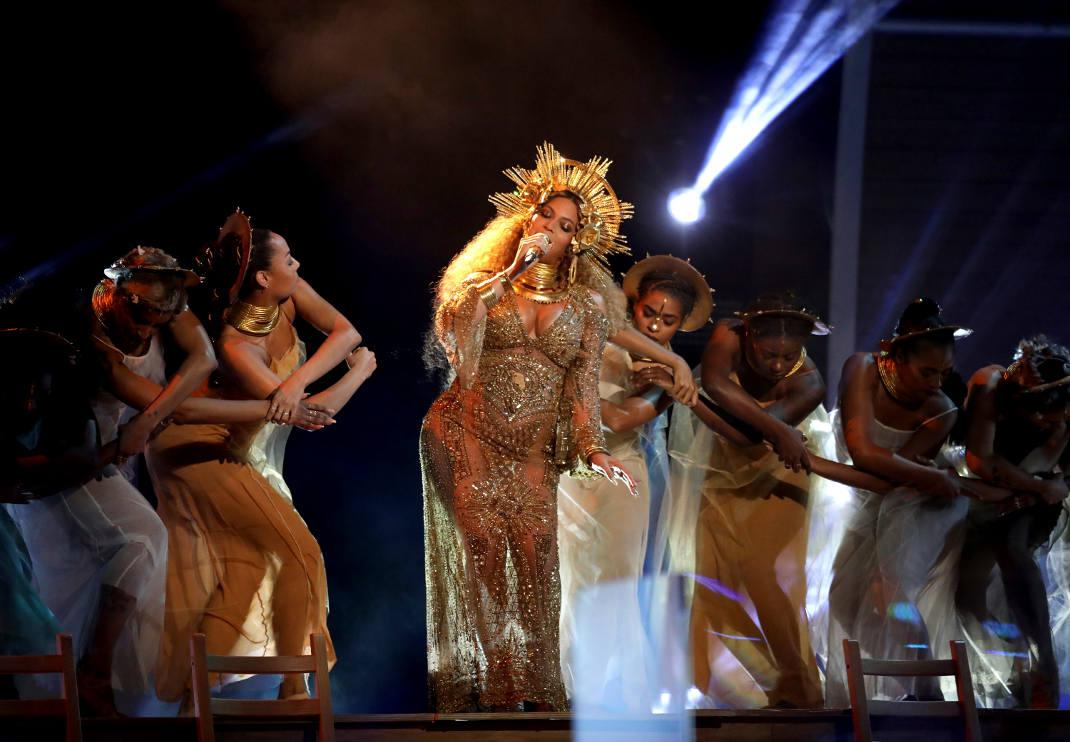 H Μπιγιονσέ εμφανίστηκε επί σκηνής ντυμένη με χρυσό φόρεμα που τόνιζε την κοιλιά της και στο πλευρό της είχε δεκάδες χορευτές. Η τραγουδίστρια ερμήνευσε τις μπαλάντες «Love Drought» και «Sandcastles» από το άλμπουμ Lemonade. Η περφόρμανς της Queen B. όπως ήταν λογικό ήταν ένα από τα highlights της βραδιάς.