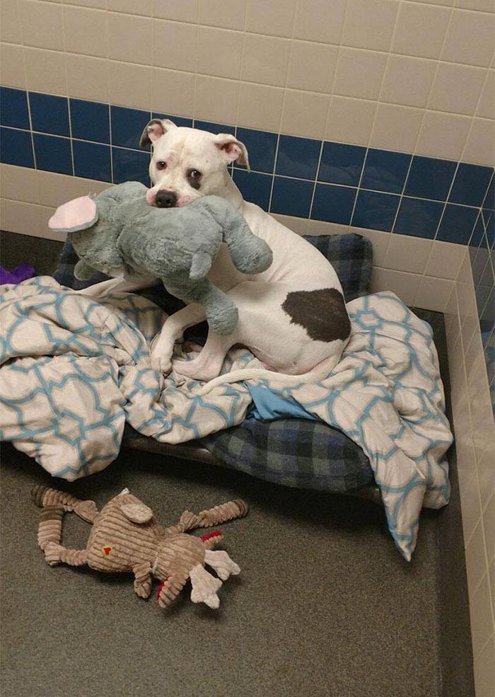 Οι ιδιοκτήτες του έχασαν το σπίτι τους και δεν μπορούσαν να τον προσέχουν πια, έτσι κατέληξε στο καταφύγιο ζώων την ημέρα του Αγίου Βαλεντίνου. Φυσικά, μαζί του είχε το γκρι ελεφαντάκι του.