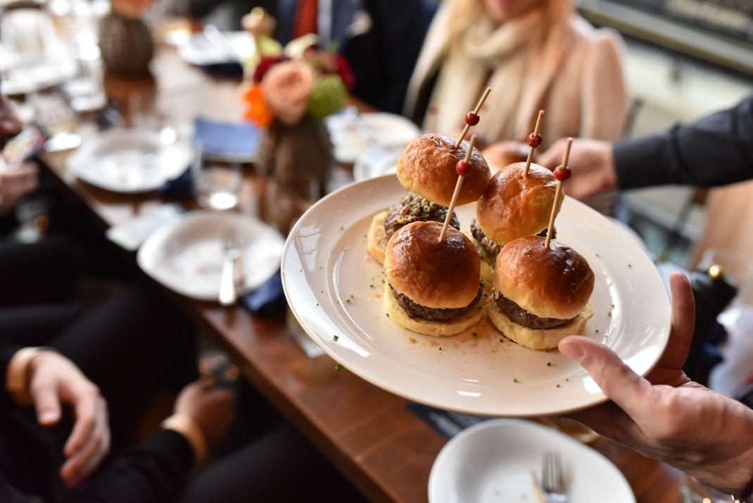 Ακολούθησαν μικρά "σουβλάκια" τύπου yakitori από λεπτοκομμένo βοδινό kushiyaki με wasabi salsa. Έπειτα τα μίνι μπέργκερ, όπου η κάθε δαγκωματιά αποκάλυπτε ένα σφιχτοαλεσμένο και κοκκινωπό εσωτερικό από εκλεκτό γευστικό κιμά από ψαχνά μοσχαρίσιων ribs, ένα tour de force απροσποίητης νοστιμιάς.
