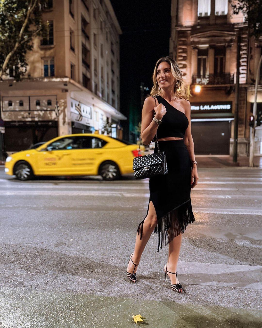 Αθηνά Οικονομάκου: Το total black look στο κέντρο της Αθήνας και η λεπτομέρεια στη φούστα που το αναβαθμίζει