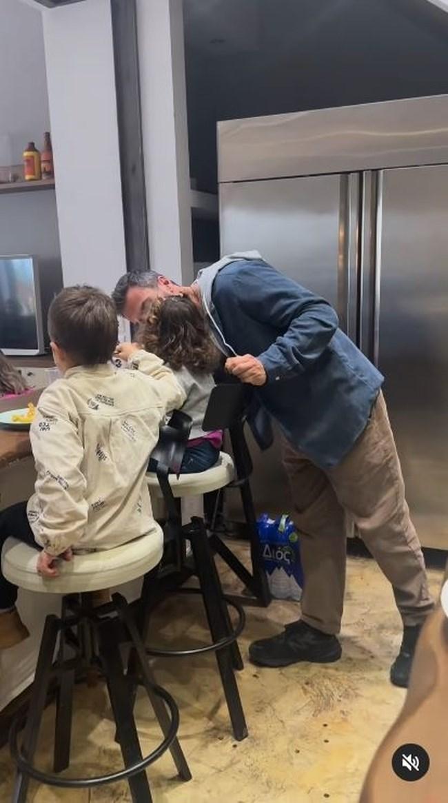 Στο βίντεο ξεχώρισε ένα τρυφερό πλάνο με τα δύο παιδιά του, τον Αχιλλέα, 4,5 ετών, και την Ακυλίνα, 3,5 ετών, ενώ σε μια φωτογραφία εμφανίζεται και η εντυπωσιακή σύζυγός του, Κωνσταντίνα Παπαμιχαήλ.