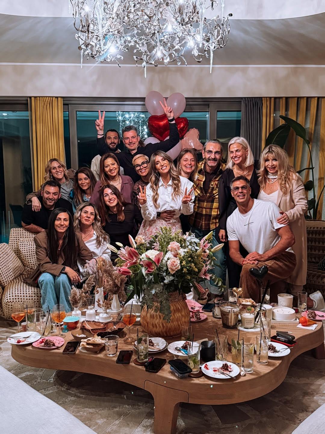 Τις ιδιαίτερες αυτές στιγμές μοιράστηκε με τους ακολούθους της μέσα από τον προσωπικό της λογαριασμό στο Instagram. Στις φωτογραφίες, η ηθοποιός φαίνεται ιδιαίτερα χαρούμενη αλλά και συγκινημένη, ειδικά τη στιγμή που σβήνει τα κεράκια της. Στο πλευρό της ήταν συνεχώς ο σύντροφός της Μπρούνο Τσερέλα ο οποίος είναι συνεχώς χαμογελαστός δείχνοντας να απολαμβάνει κάθε λεπτό. Το ίδιο ευδιάθετοι δείχνουν και οι υπόλοιποι καλεσμένοι ανάμεσα στους οποίους διακρίνονται η Σίσσυ Χρηστίδου, η Χριστίνα Κοντοβά, η Λένα Δροσάκη, o Κωνσταντίνος Δέδες κ.ά.