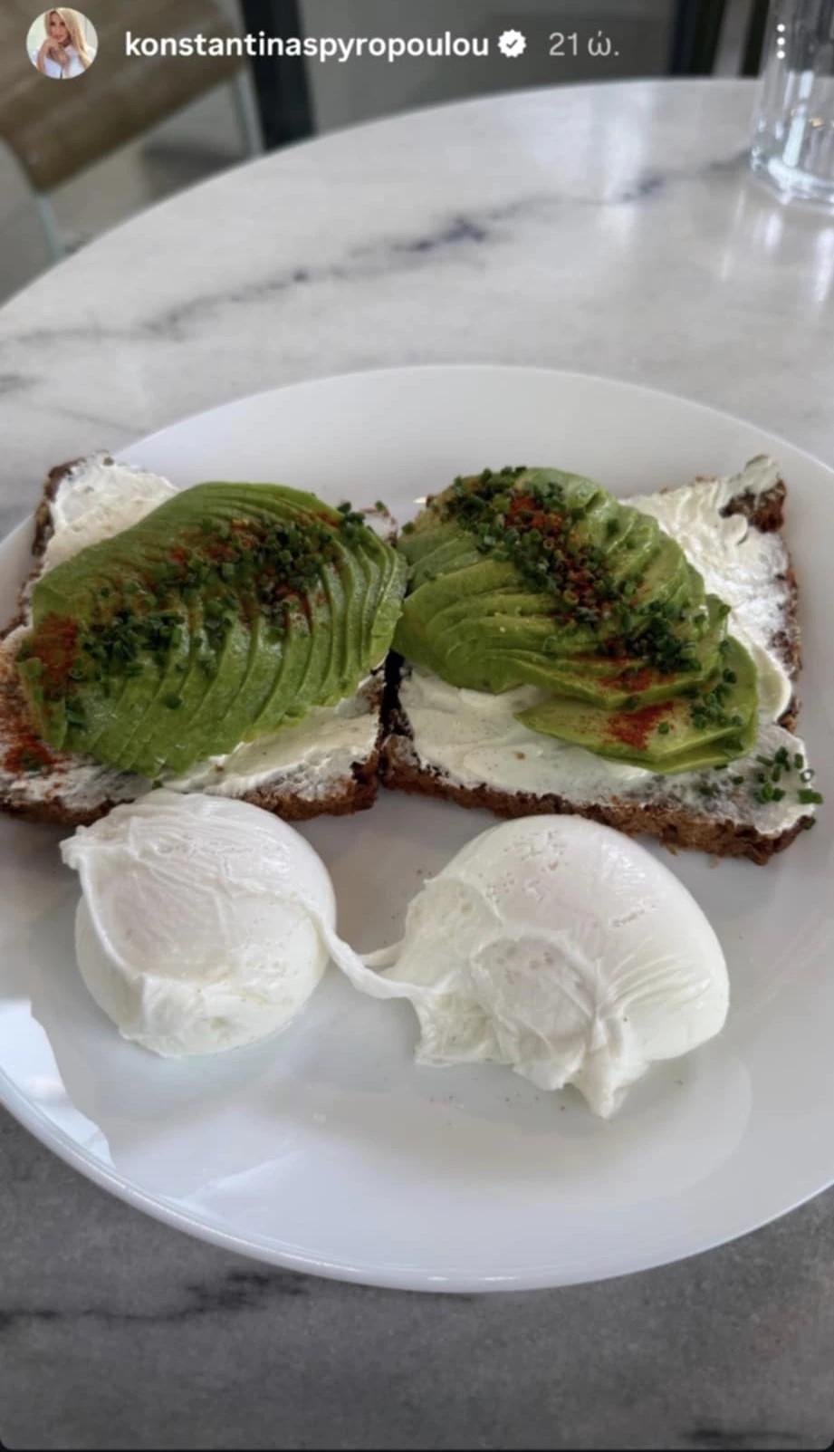 Η μέρα της Κωνσταντίνας Σπυροπούλου ξεκινά με μια νόστιμη, αλλά ταυτόχρονα θρεπτική επιλογή, την οποία και μοιράστηκε με τους ακολούθους της στο Instagram.