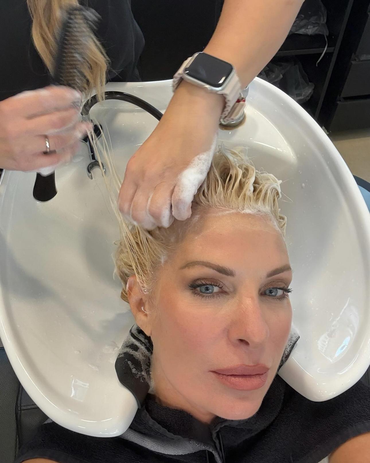 «Ημέρα περιποίησης των μαλλιών μου και φυσικά βαφή», έγραψε στη λεζάντα της ανάρτησης η παρουσιάστρια.