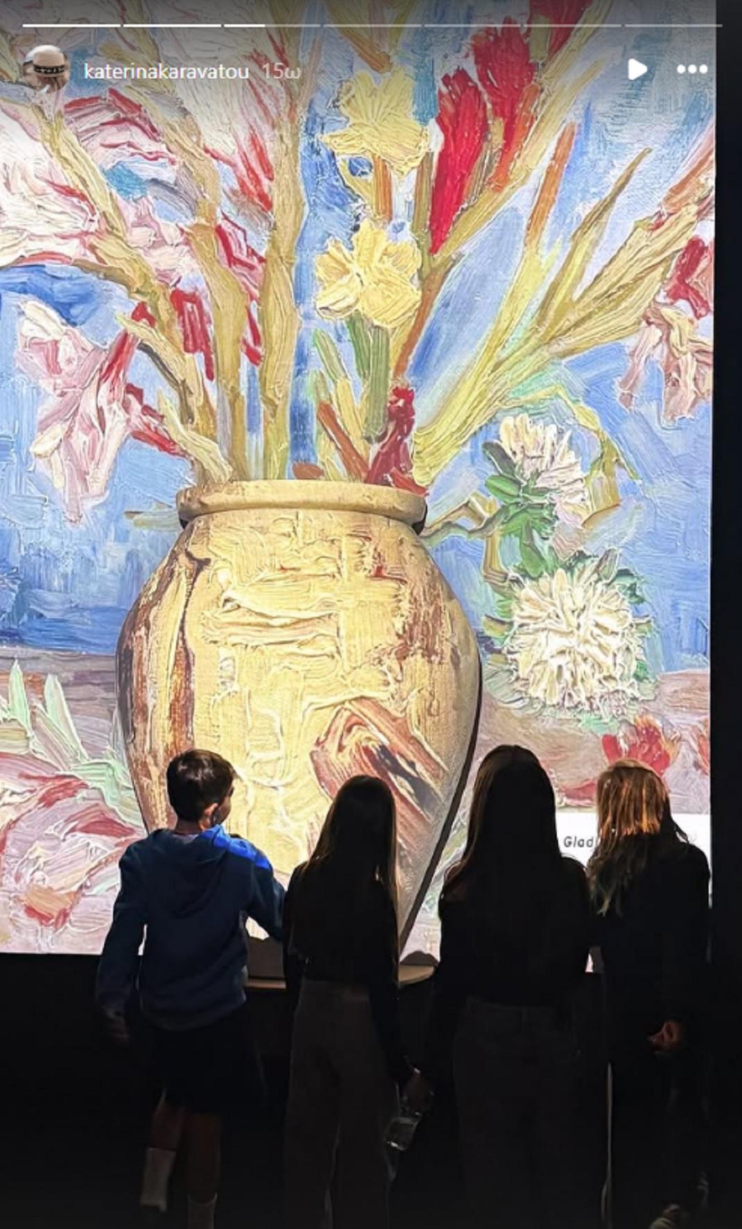 Ο Αρίωνας ανέλαβε τον ρόλο του φωτογράφου, απαθανατίζοντας τη μαμά του μπροστά στους διάσημους πίνακες του Van Gogh. Η Κατερίνα Καραβάτου πόζαρε χαμογελαστή, ενώ ο 9χρονος γιος της προσπαθούσε να τραβήξει την τέλεια λήψη.