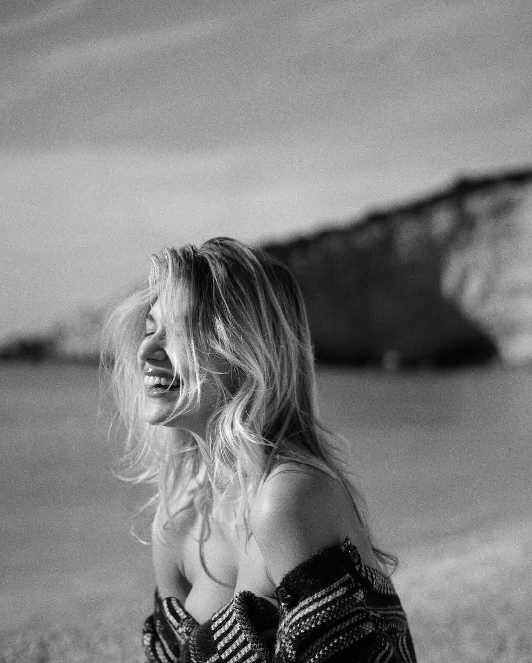 Η Κλέλια Ανδριολάτου ποζάρει τόπλες μόνο με τη ζακέτα της με φόντο το υπέροχο Πόρτο Κατσίκι.