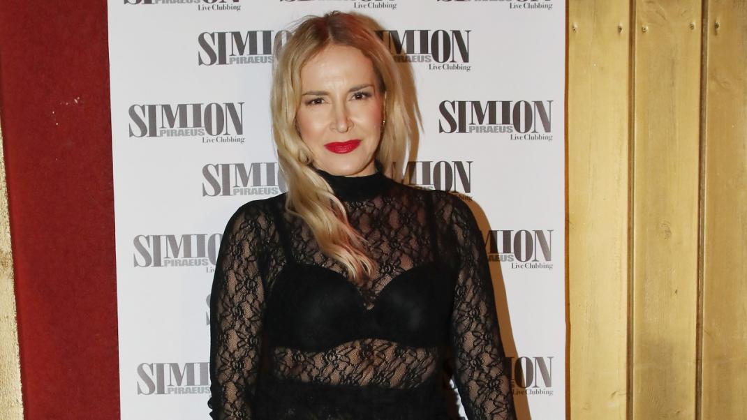 Η Μαρία Ανδρούτσου με ημιδιάφανο δαντελένιο φόρεμα στα 56 της, σε βραδινή εμφάνιση