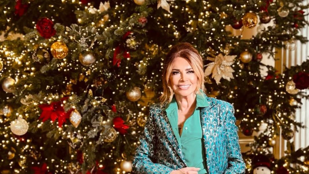 Η Μιμή Ντενίση υποδέχεται τα Χριστούγεννα με μια άψογη εμφάνιση, ποζάροντας μπροστά σε ένα λαμπερό χριστουγεννιάτικο δέντρο, αποδεικνύοντας πώς το chic δεν έχει ηλικία.