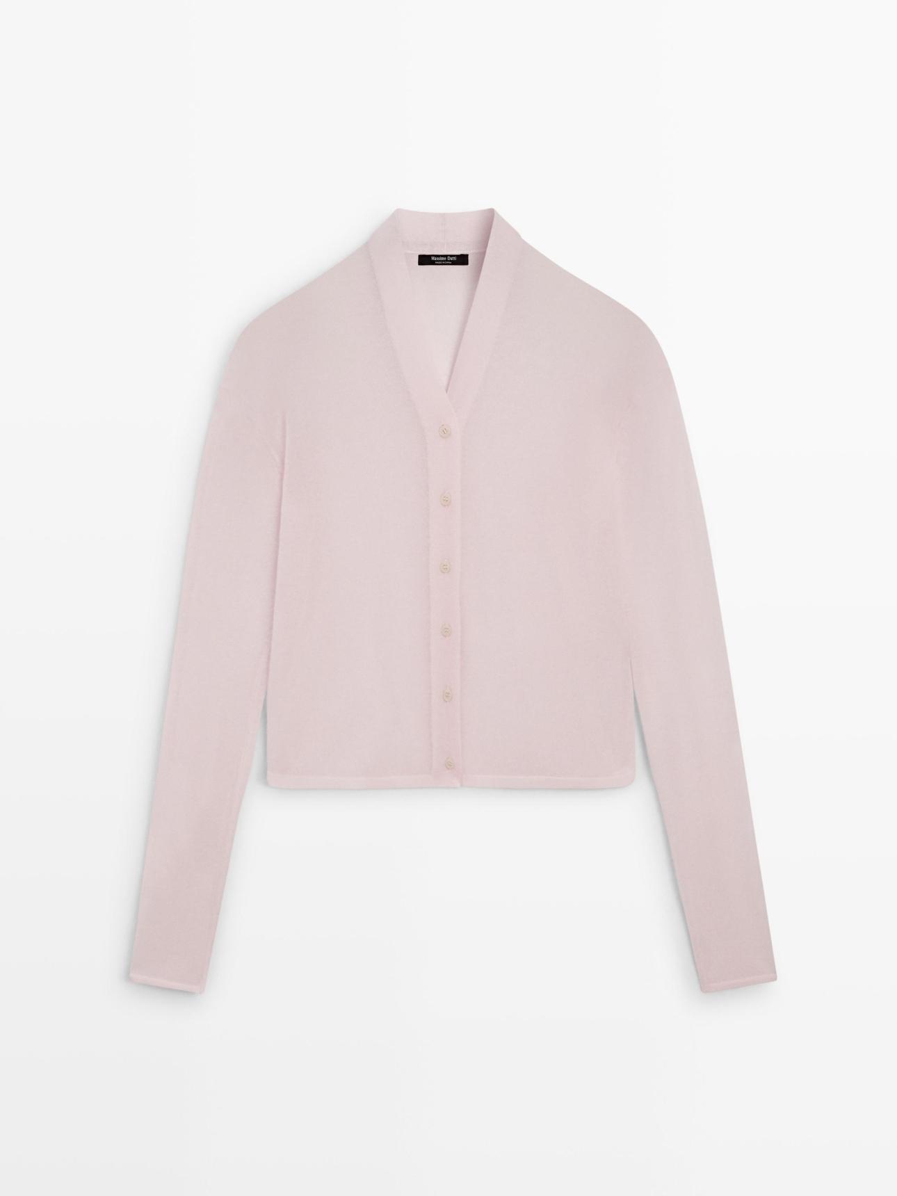 Στο επάνω μέρος, η παρουσιάστρια επέλεξε ένα sheer πλεκτό cardigan, επίσης από τα Massimo Dutti, το οποίο χαρίζει μια αέρινη και φίνα διάσταση στο σύνολο. Η ημιδιάφανη υφή του δημιουργεί ένα ενδιαφέρον layering, ιδανικό για την άνοιξη όπου οι θερμοκρασίες είναι συχνά απρόβλεπτες. Ταυτόχρονα, προσφέρει θηλυκότητα χωρίς να χάνει τον επαγγελματικό χαρακτήρα που απαιτεί ένα office outfit. Για το γραφείο, φορέσετε το πάνω από ένα λευκό φανελάκι.