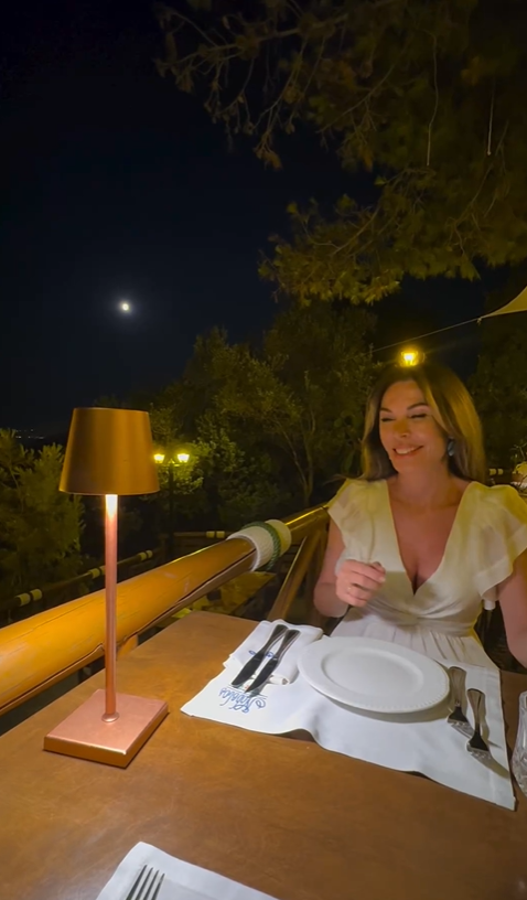 Παράλληλα, εκτός από τα αξιοθέατα και τη νυχτερινή Ζάκυνθο, έδειξε και το κομψό της look σε νυχτερινή έξοδο με τον Νίκο Ευαγγελάτο, όπου φόρεσε ένα κομψό και αέρινο λευκό φόρεμα, ιδανικό για να αναδείξει τη μαυρισμένη και ηλιοκαμένη της επιδερμίδα.