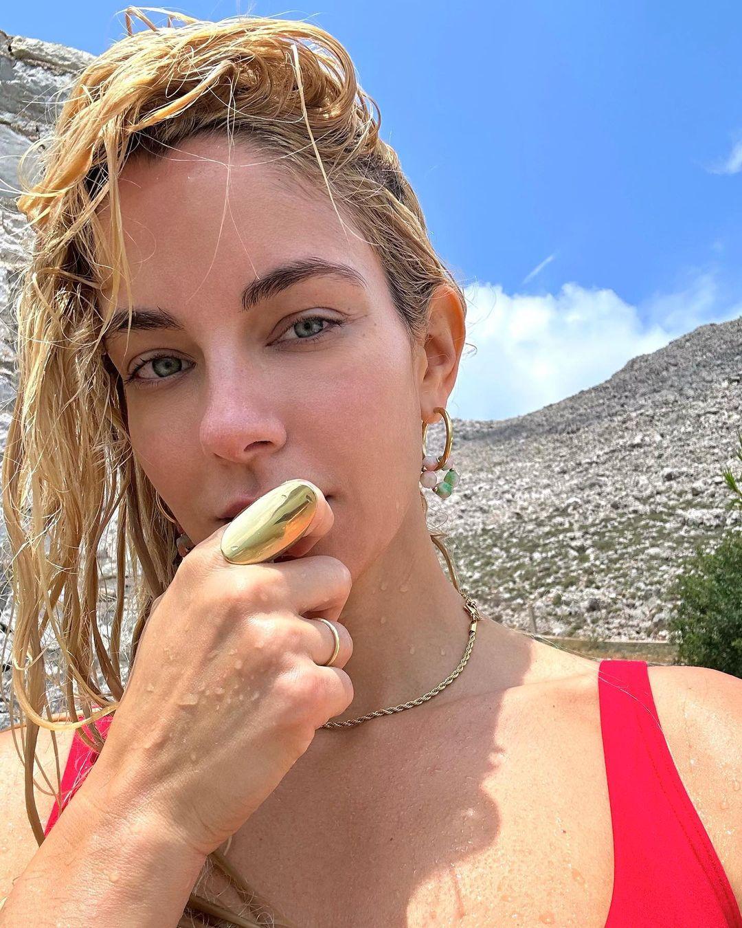 Η Δούκισσα Νομικού με κόκκινο μπικίνι και χωρίς ίχνος μακιγιάζ στο πρώτο της μπάνιο για φέτος