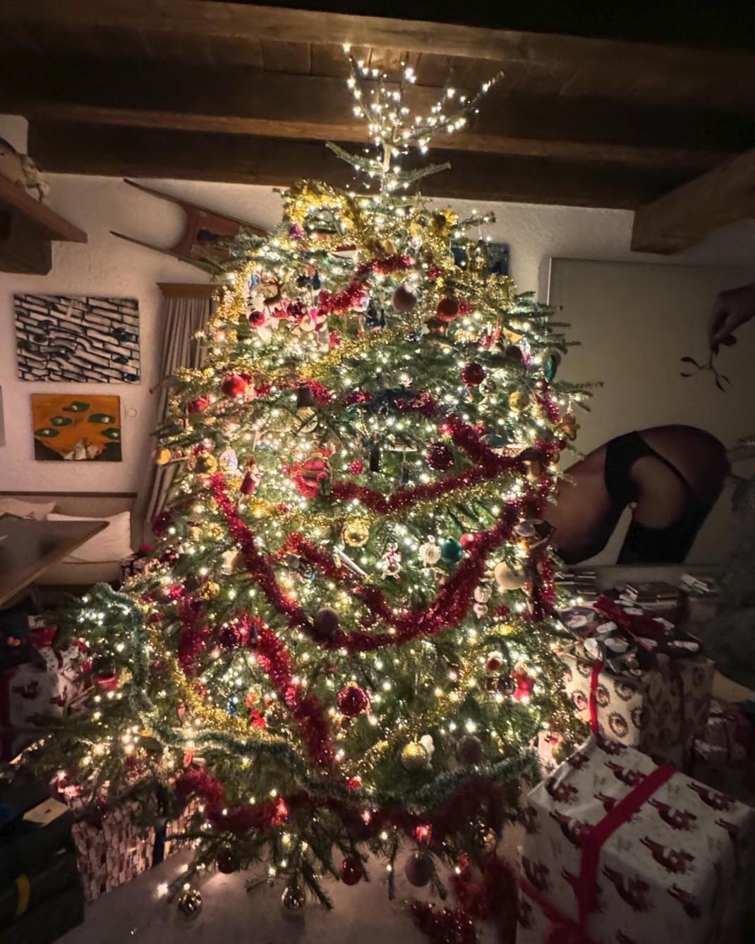 Ανέβασε λοιπόν στον προσωπικό της λογαριασμό στο Instagram μερικές φωτογραφίες στις οποίες ποζάρει με άκρως εορταστική διάθεση μπροστά από το χριστουγεννιάτικο δέντρο.