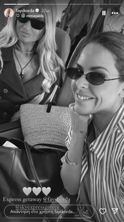 Η Φαίη Σκορδά, όπως αποκαλύφθηκε στα social media έκανε ένα σύντομο ταξίδι στην Κρήτη μαζί με την Έλενα Γαλύφα ενώ σε επόμενα πλάνα φαίνεται πως φόρεσε το μπικίνι της και έκανε μια βουτιά στην πισίνα.