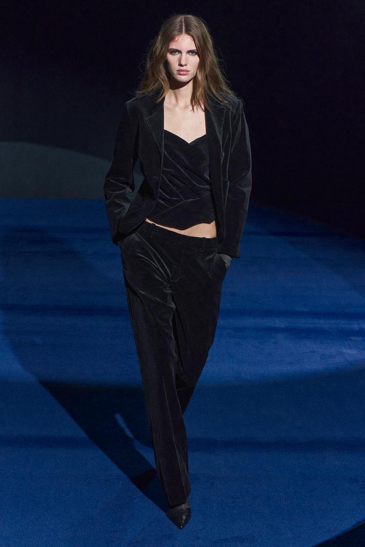 Το βελούδινο σακάκι (velvet jacket) κοστούμι θα το βρείτε στα Zara, σε μαύρο χρώμα με κουμπιά, και είναι η τέλεια επιλογή για μια εμφάνιση που θα λειτουργεί κάθε Χριστούγεννα. Αυτό το κομμάτι συνδυάζει κομψότητα και ζεστασιά, κάνοντάς το ιδανικό για τις εορταστικές περιστάσεις και τις βραδιές που απαιτούν μια ιδιαίτερη εμφάνιση.