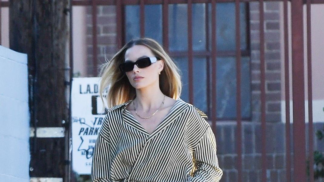 Η Μάργκοτ Ρόμπι σε effortless chic εμφάνιση με μεταξωτό ριγέ σετ και vintage Birkin