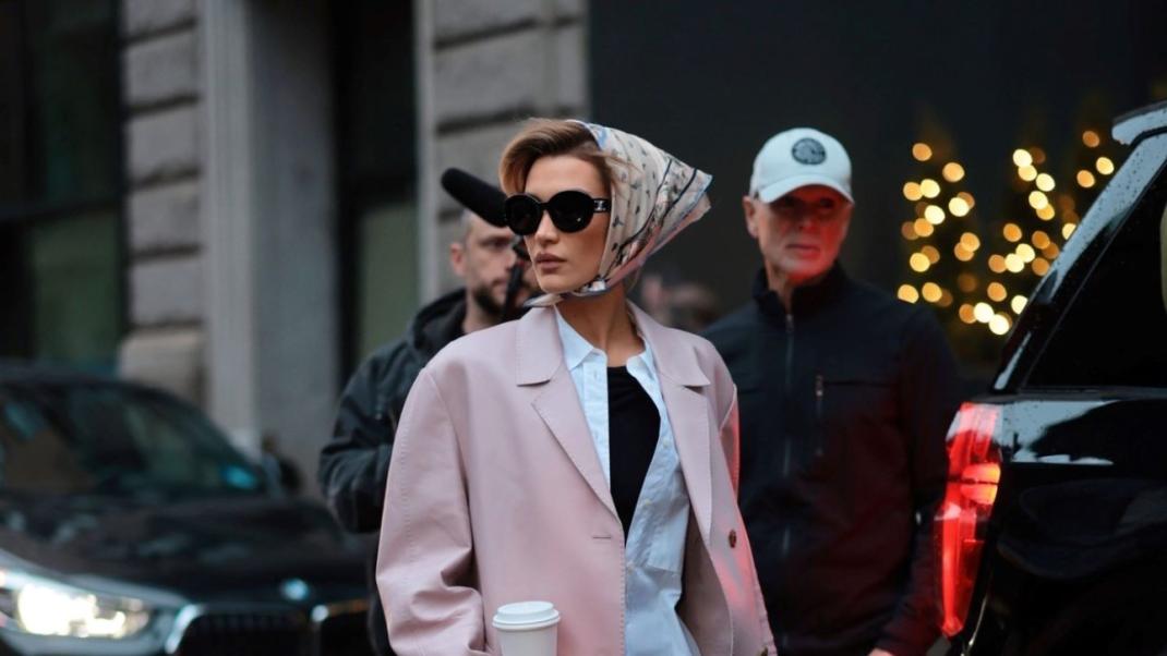 Κάτω από το παλτό, το σύνολο παρέμεινε απλό και λειτουργικό, με μαύρο τοπ και λευκό πουκάμισο. Οι μπαλαρίνες κράτησαν την εμφάνιση ανάλαφρη, ενώ τα Celine γυαλιά ηλίου πρόσθεσαν μια διαχρονική πινελιά. Το παστέλ σατέν μαντήλι που έδεσε στο κεφάλι ήταν μια αναφορά στο γαλλικό στιλ, η οποία ολοκλήρωσε το look με ανεπιτήδευτη κομψότητα.