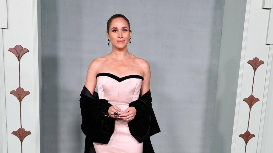 Στράπλες φόρεμα και θεατρική κάπα: Η Μέγκαν Μαρκλ φέρνει αέρα old Hollywood στο κόκκινο χαλί