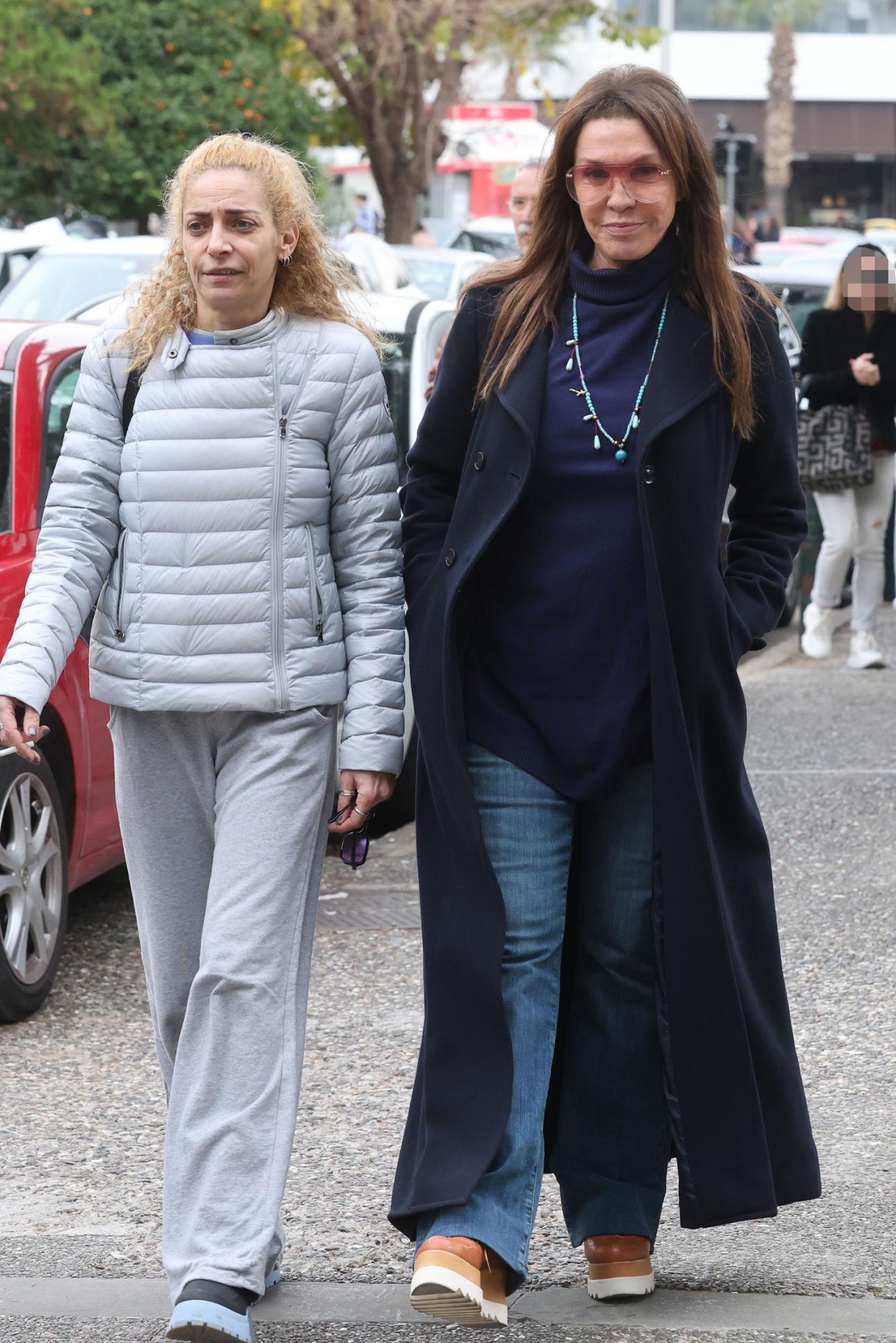 Η Βάνα Μπάρμπα με wide-leg τζιν και μακρύ παλτό έκανε το τέλειο all day look για την πόλη