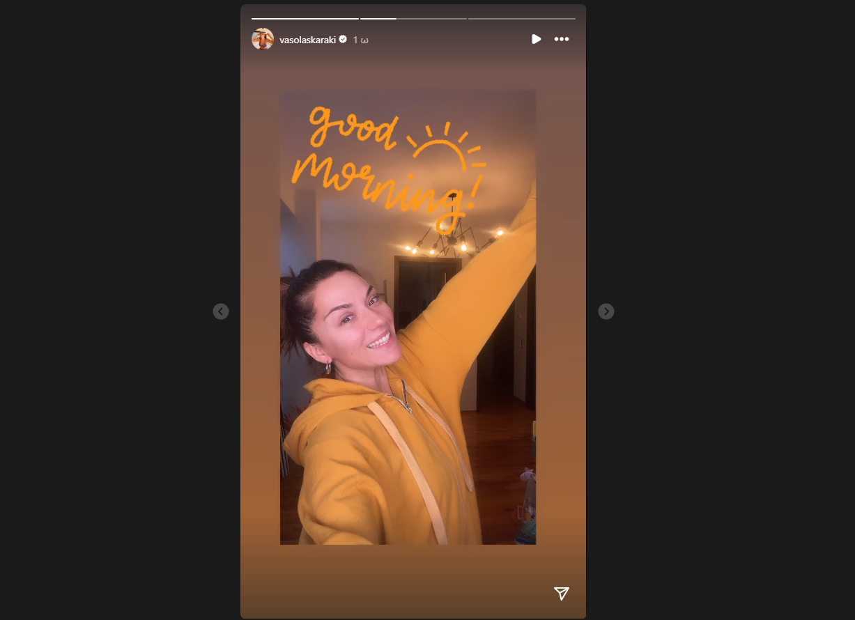Αυτή τη φορά, η Βάσω Λασκαράκη έκανε μια ανάρτηση στο Instagram, όπου τη βλέπουμε να ποζάρει χωρίς μακιγιάζ, ενώ καλημερίζει τους followers της.