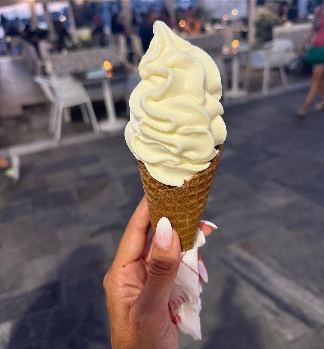Σε άλλες φωτογραφίες, η Κωνσταντίνα Σπυροπούλου μοιράστηκε αγαπημένες γωνιές του νησιού, καθώς και μερικά αλμυρά και γλυκά εδέσματα που απόλαυσε κατά την παραμονή της εκεί.