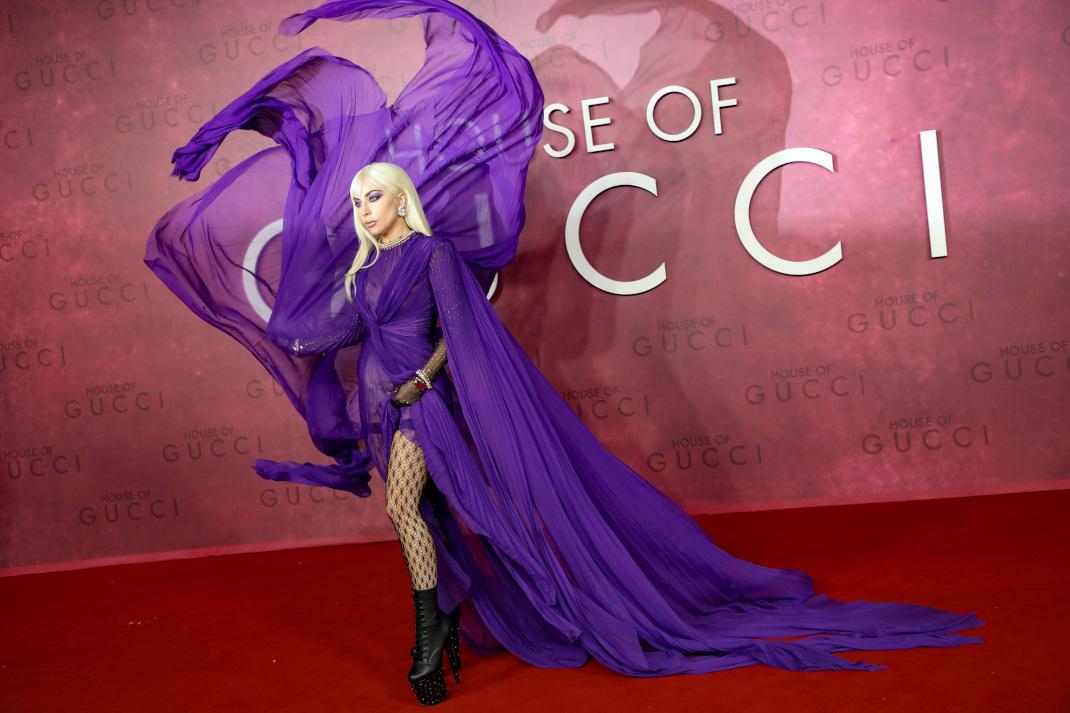 Η Lady Gaga απαστράπτουσα στο κόκκινο χαλί -Με σέξι, μωβ Gucci φόρεμα, στην πρεμιέρα της ταινίας της