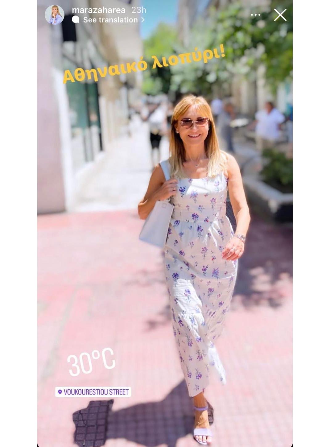Σε πρόσφατη φωτογραφία που ανάρτησε στα stories της, η Μάρα Ζαχαρέα φαίνεται να περπατά στο κέντρο της Αθήνας με ένα ρομαντικό καλοκαιρινό look.