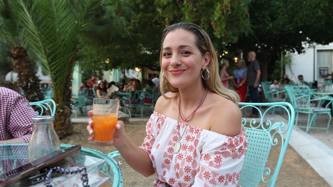 Η Νατάσσα Μποφίλιου φορώντας ένα καλοκαιρινό μακρύ φόρεμα στράπλες απόλαυσε το χυμό της στον κήπο του καφέ μπαρ «Μπλε Παπαγάλος» ακούγοντας τα νέα τραγούδια του Δημήτρη Σαμόλη, τον οποίο γνωρίσαμε μέσα από το ρόλο του γυναικολόγου στις «Άγριες Μέλισσες» του ΑΝΤ1.