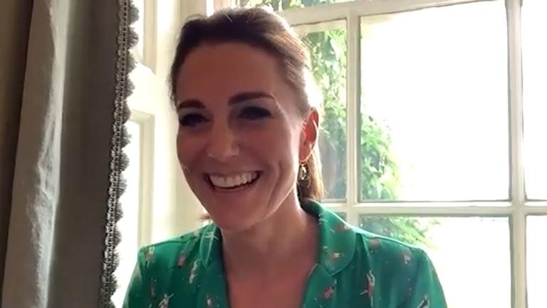 Φορά μαύρο τζιν, πορτοκαλί πουλόβερ και πράσινο τζάκετ ενώ φορά ασπίδα προστασίας στο πρόσωπο.