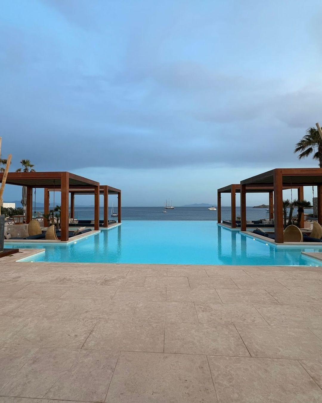Από το κάρουζελ των φωτογραφιών της δεν έλειψαν και τα στιγμιότυπα στα οποία δείχνει τη θέα από το αεροπλάνο, πριν προσγειωθεί στη Μύκονο, από την παραλία και την πισίνα του ξενοδοχείου.