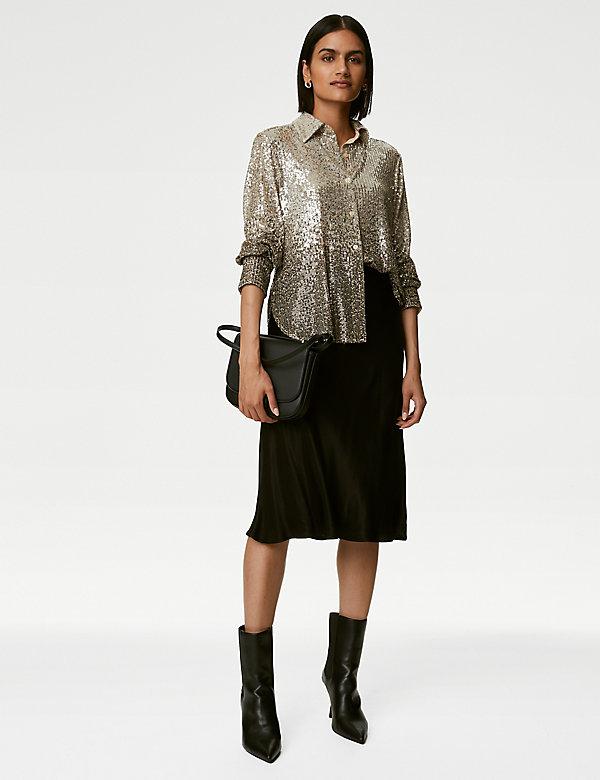 Η μίντι δερμάτινη φούστα μπορεί να φορεθεί από το πρωί μέχρι και το βράδυ με μπότες ή και sneakers, με ένα μάλλινο αμάνικο τοπ και ένα πουκάμισο ενώ το πουκάμισο όλο παγιέτα μπορεί να φορεθεί σε μια βραδινή έξοδο σε ένα dinner, ένα party ή μια έξοδο για ποτό.
