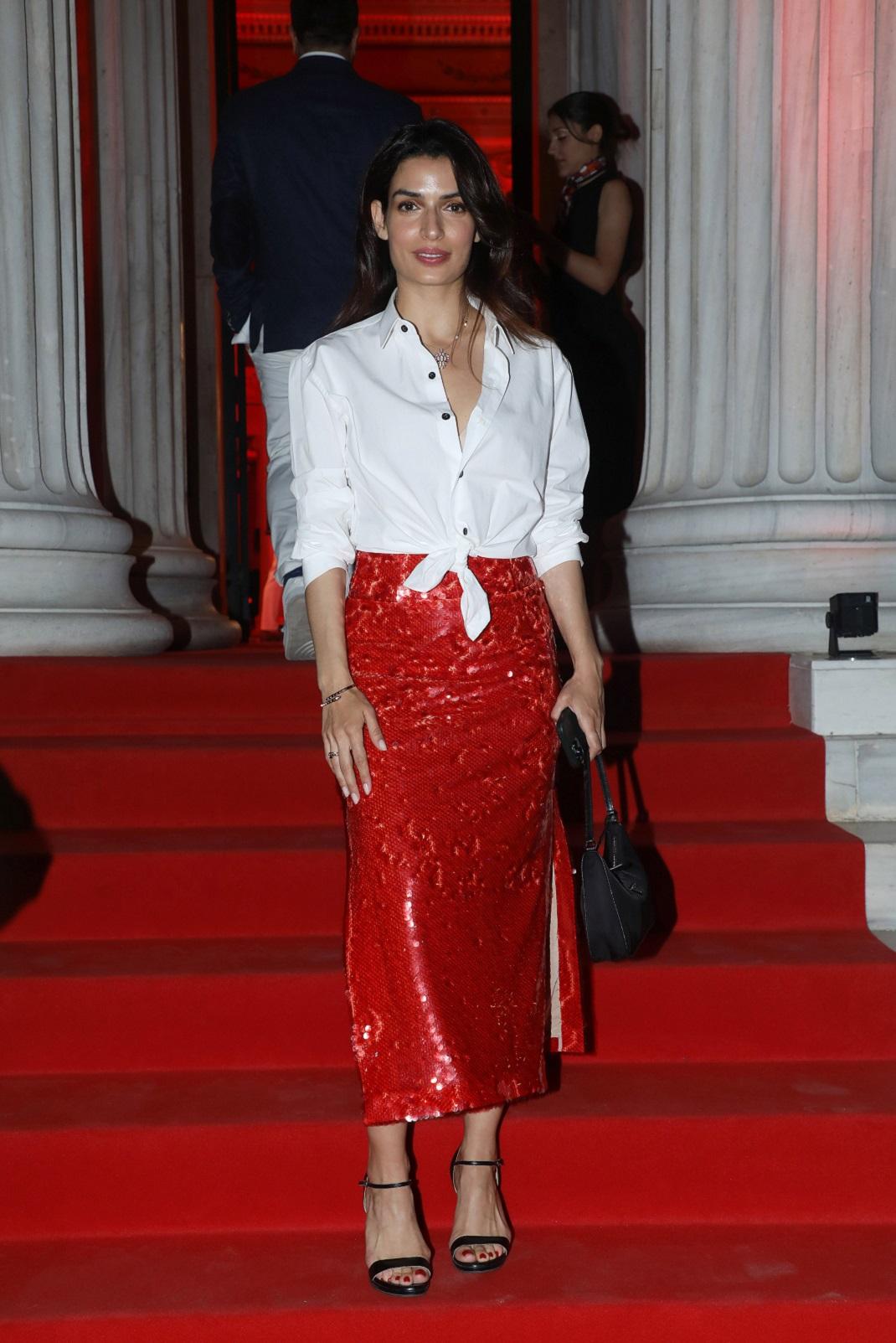 Στο Instagram δημοσίευσε από το event μια σειρά από videos στα Instagram Stories της και εκείνο που τράβηξε τα βλέμματα ήταν η κόκκινη μίντι φούστα με παγιέτες.