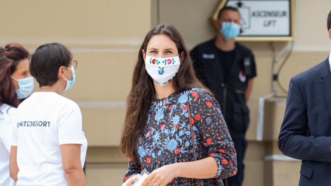 Η Στεφανί του Μονακό επέλεξε μια λευκή παντελόνα, μαύρη πουκαμίσα και λευκόit bag, ενώ η Πολίν ένα σατέν trench dress του δικού της brand, Alter.