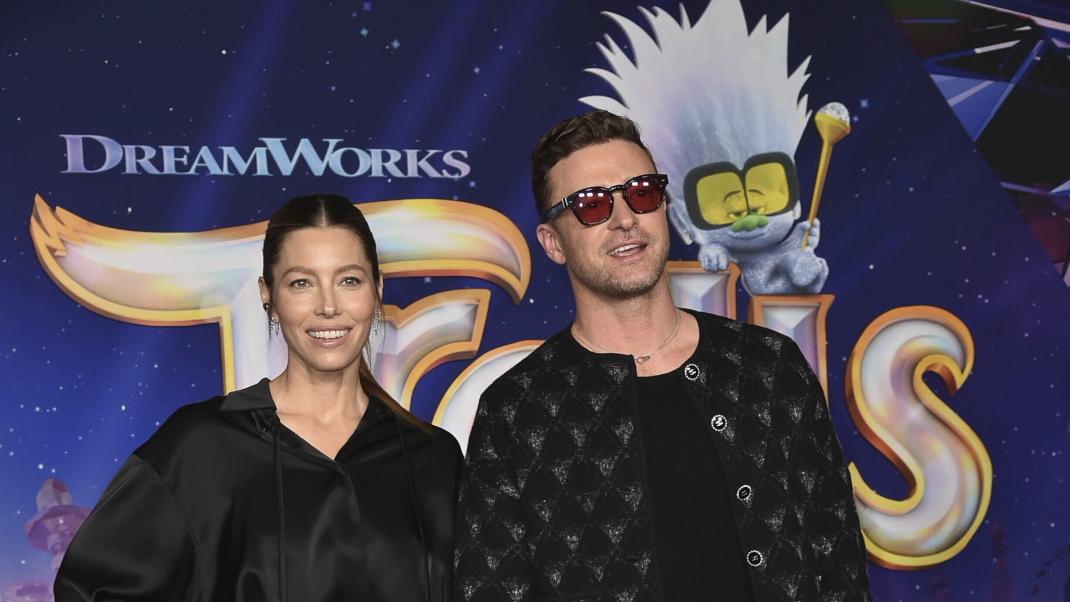 Ο Τζάστιν Τίμπερλεϊκ πήγε με τη σύζυγό του, Τζέσικα Μπίελ, στην πρεμιέρα της ταινίας «Trolls Band Together» που έγινε στο Λος Άντζελες.