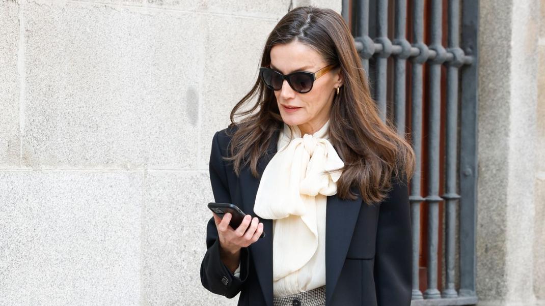 Στην εμφάνισή της, η βασίλισσα Λετίθια φόρεσε ένα εκρού πουκάμισο με χαλαρό φιόγκο στον λαιμό, το οποίο συνδύασε με ψηλόμεσο παντελόνι σε γήινες αποχρώσεις και κλασικά μαύρα loafers. Το αποτέλεσμα ήταν ένα σύνολο κομψό, επαγγελματικό αλλά και ιδιαίτερα θηλυκό, αποδεικνύοντας ότι το pussy bow πουκάμισο μπορεί να μεταμορφώσει ακόμη και το πιο απλό outfit σε statement εμφάνιση.