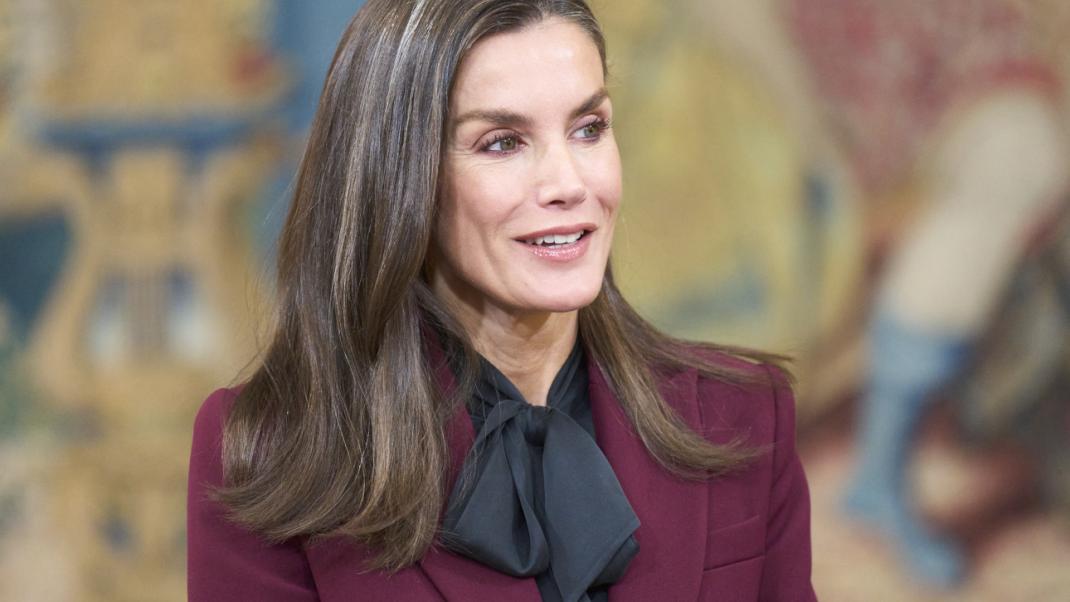 Το βουργουνδί είναι το χρώμα του χειμώνα και έχει αναδειχθεί σε ένα από τα κύρια trends της σεζόν. Γι' αυτό και η βασίλισσα Λετίθια το επέλεξε για μια κομψή εμφάνιση, με εφαρμοστό σακάκι και ίσιο παντελόνι.
