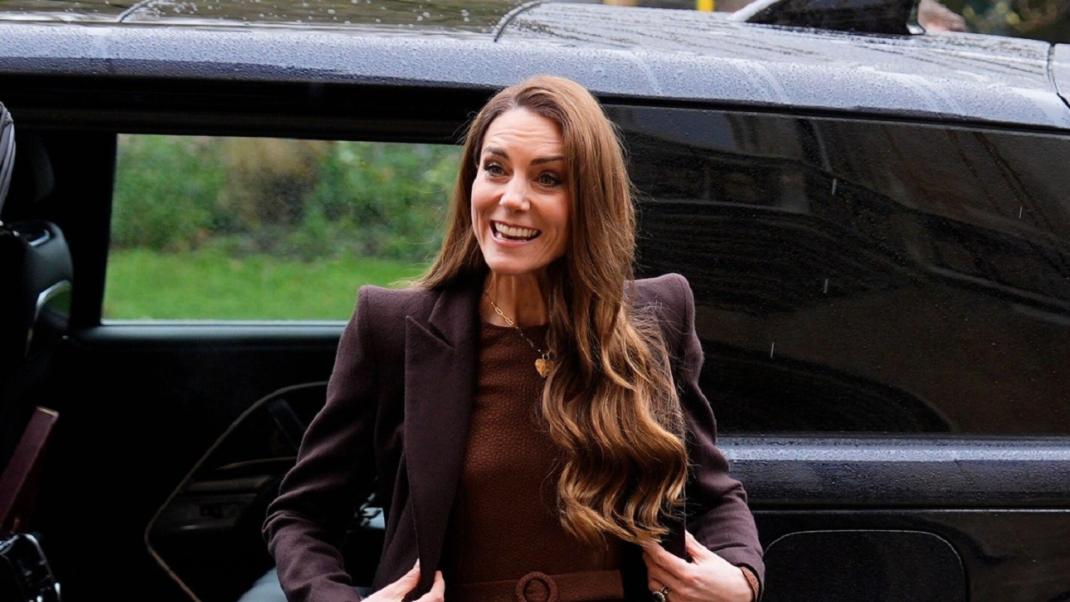 Για τη συγκεκριμένη περίσταση, η Κέιτ Μίντλετον επέλεξε ένα από τα βασικά χρώματα της σεζόν, το σοκολατί καφέ, μια απόχρωση που φαίνεται να έχει υιοθετήσει συχνά στις πρόσφατες εμφανίσεις της. Τον περασμένο μήνα, κατά την επίσκεψή της στη Σκωτία, είχε φορέσει την ίδια χρωματική παλέτα σε κοστούμι με σακάκι. Αυτή τη φορά, ωστόσο, επέλεξε ένα κομψό φόρεμα σε γραμμή Α, με φαρδιά σιλουέτα και μια ιδιαίτερα κολακευτική λεπτομέρεια.