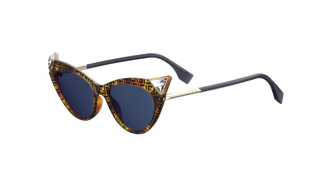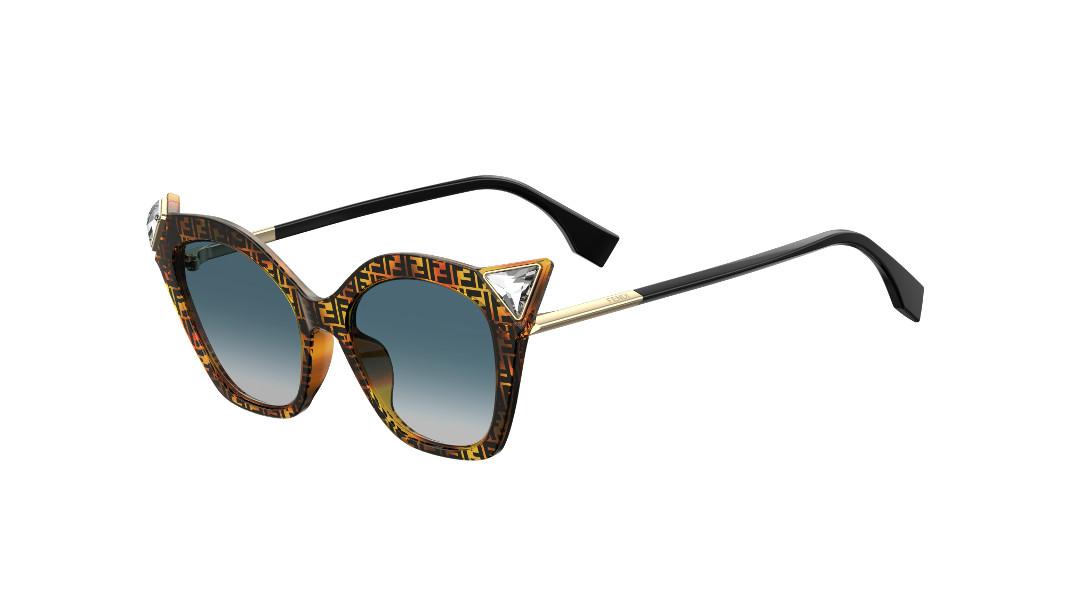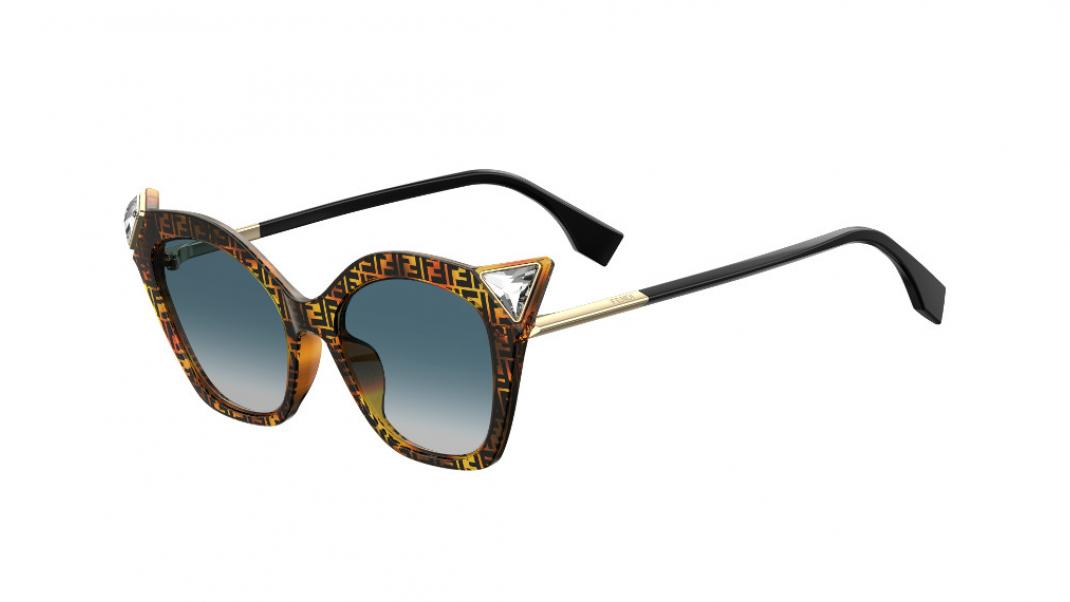 Τα γυαλιά ηλίου σε φόρμα «μάτι της γάτας» (μοντέλο FF 0356/S) είναι διαθέσιμα σε σκούρα ταρταρούγα με το λογότυπο FF σε όλη της την επιφάνεια και μπλε φακούς, μαύρο με γκρι φακούς, κίτρινο με μπορντό φακούς